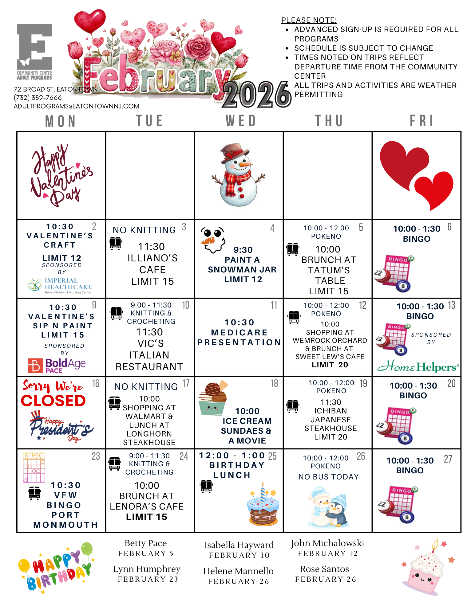 February Calendar of Events
