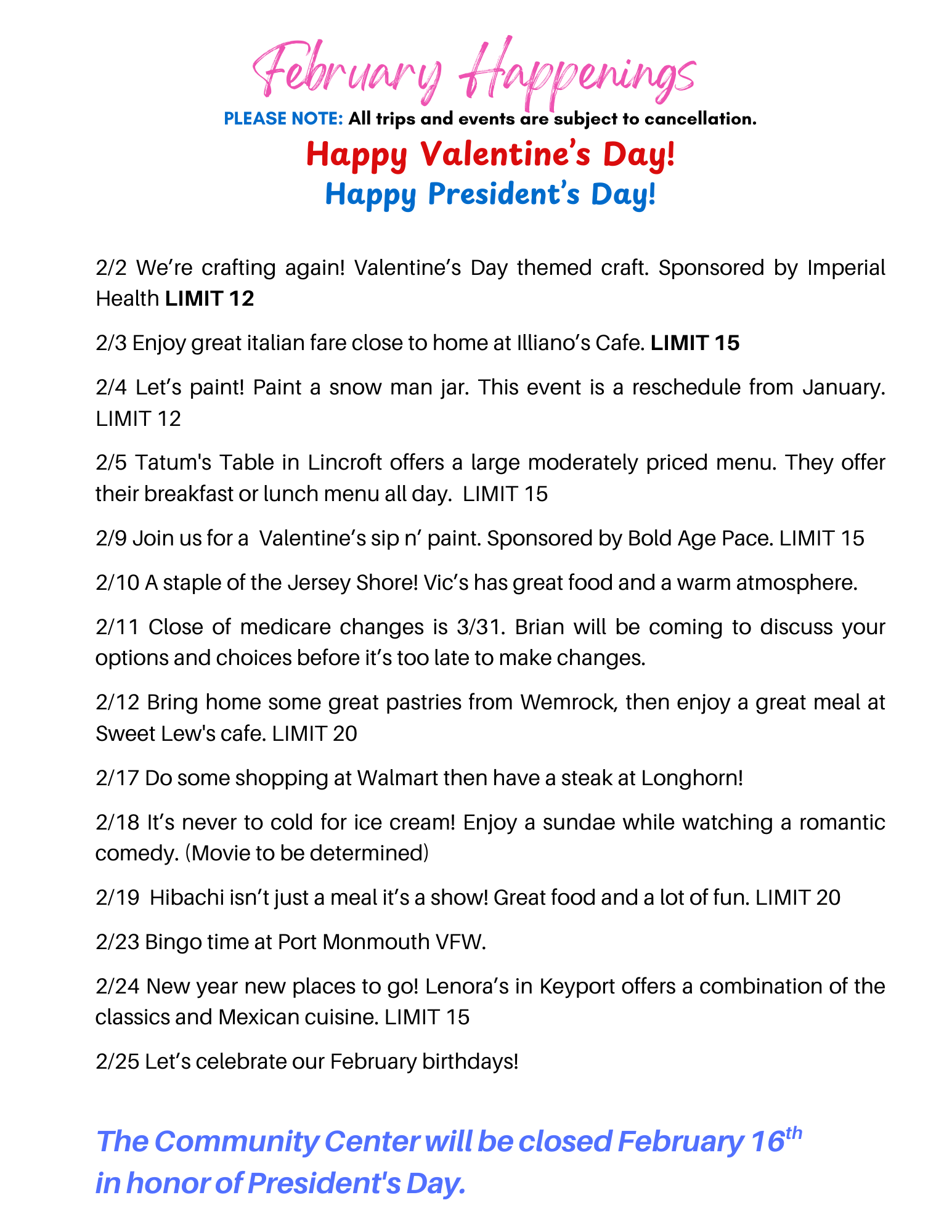 February Calendar of Events